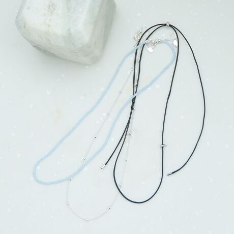 →ビーズ:ライトブルー / チェーン:シルバー/ チョーカー:ブラック(モチーフ・スライダー部分シルバー)