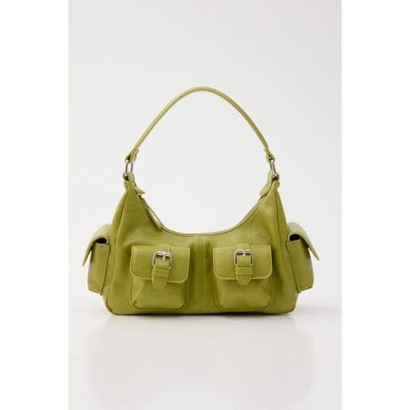 【MANY POCKET HOBO BAG/ メニ□ポケットホーボバッグ】■ポイント&ディテールフロントに複数のポケットを配したショルダーバッグ。立体感のあるポケットデザインとバックルディテールが、コーディネートのアクセントになります。程よい艶感のある素材を使用し、カジュアルながらもエッジの効いた印象に。肩に自然にフィットするホーボー型で、持つだけでこなれたムードを演出します見た目以上の収納力があり、デイリー使いしやすいサイズ感も魅力です。■スタイリングデニムやミニスカートと合わせたY2Kライクなスタイリングがおすすめ。シンプルなワンピースやジャケットスタイルに合わせれば、バッグの存在感が引き立ちます。カジュアルにもモードにも振れる、今季らしい主役バッグです。