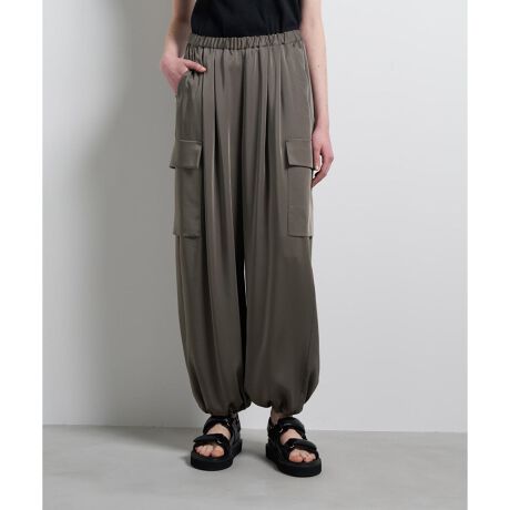 後ろゴム仕様のウエストでラクな穿き心地。リラクシーなシルエットながら、裾のゴムで絞ることでスッキリとした印象に。ワイドすぎないバランスで、きれいめやモードな装いの外しとしても活躍する、大人カジュアルのカーゴパンツ。