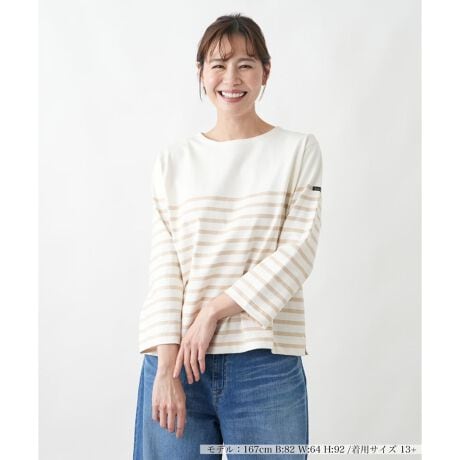 フレンチカジュアルの代名詞ともいえる、Le minor(ルミノア)のボーダーカットソー。爽やかなボーダー柄と、顔周りをすっきりと見せるボートネックが、上品で抜け感のある大人のマリンスタイルを演出します。腕をほっそりと見せてくれる七分袖は、春から秋口まで長いシーズン活躍。しっかりとした上質な生地感は、着るほどに体に馴染み、長くご愛用いただけます。デニムと合わせて王道のカジュアルスタイルはもちろん、きれいめのスカートと合わせて、フレンチシックに着こなすのも素敵です。