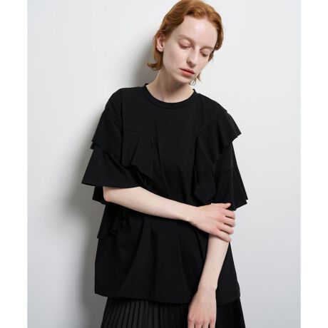 遊び心あるアシンメトリーなフリルが目を惹くトップス。