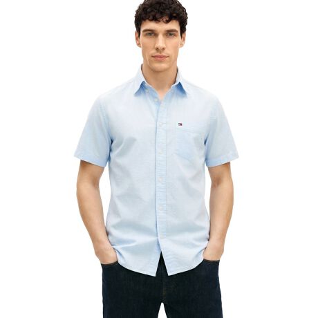 シアサッカーソリッドショートスリーブシャツ