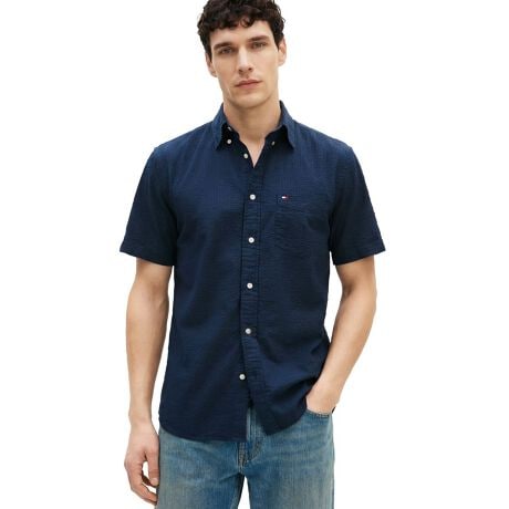 シアサッカーソリッドショートスリーブシャツ