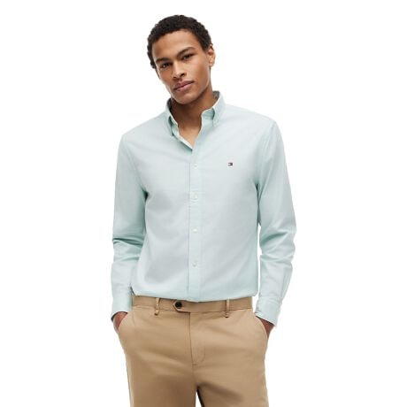 カジュアルからエレガントまでこなすオックスフォードシャツ。ソリッドカラーでシンプルにまとめ、左胸にアクセントとなるフラッグロゴ刺しゅうをあしらいました。シルエットはあらゆるアイテムに合わせやすいレギュラーフィット。背面はセンターボックスタックを入れてゆとりをもたせています。