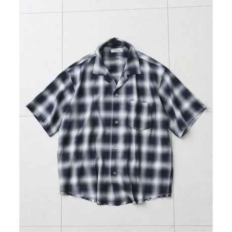 《予約》レーヨン アンカット フリンジ オンブレーチェック 半袖シャツ