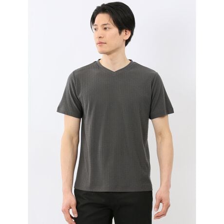 シンプル過ぎない存在感のあるVネックの半袖Tシャツです。無地とは一線を画する表面感のあるジャガード柄で、着映えするルックスに仕上げています。一枚で着るのはもちろん、ジャケットやシャツ、ジレベストのインナーとしても便利なアイテムです。