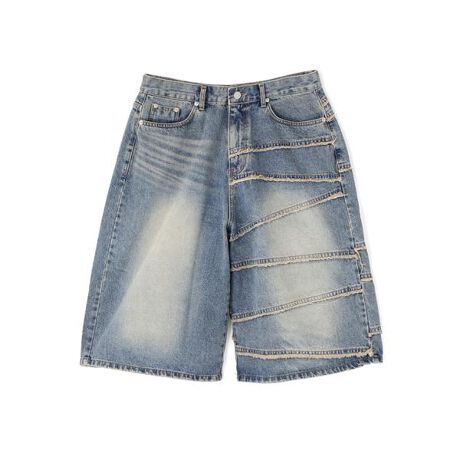 ダメージとカッティングの再構築デザインが際立つ、インパクト抜群のデニムショーツ。
