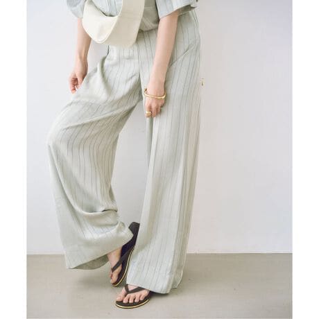 艶やかなサテン生地にストライプ状に入った透かし模様が美しいワイドパンツ。