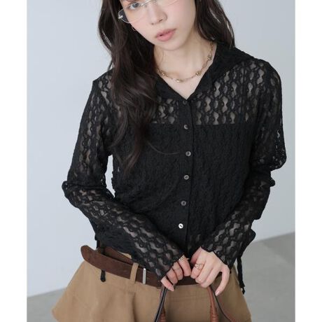 繊細なカットレース素材を使用した軽やかなフーディー。フロントはボタン開き仕様で、トップスとしても羽織としても着回せます。サイドのドロストでシルエットに変化をつけられ、ウエストラインをすっきり見せながらスタイルアップ効果も期待。コンパクトな丈感でバランスが取りやすく、デニムでカジュアルに、ワンピースやスカートと合わせてレディライクにも楽しめます。※モデルの着用画像の場合、光の当たり具合により、実際の色味と異なって見えることがございます。色味は、商品単体の画像をご参照ください。