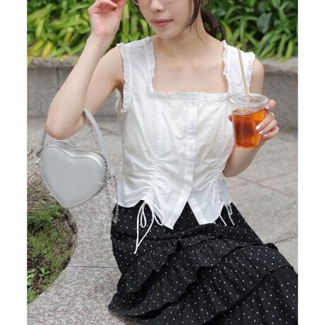 デコルテが綺麗にスッキリ見えるスクエアネックに、フロントのドロストギャザーで表情をつけたブラウス。リボンを結んだり垂らしたり、ギャザーの寄せ具合で着丈を変えて着こなせます。襟まわりと袖口には共地ミニフリルをあしらいポイントをプラス。後ろは一部シャーリングギャザーが入っているので、体に程よくフィットします。ワイドデニムやカジュアルなボトムス合わせがおススメ。清涼感のあるコットン素材なので、ラフでカジュアルな印象です。※モデルの着用画像の場合、光の当たり具合により、実際の色味と異なって見えることがございます。色味は、商品単体の画像をご参照ください。