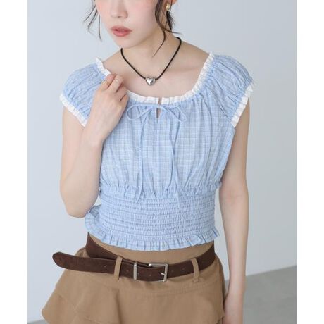 水洗いでナチュラルな風合いと柔らかさを出したチェック柄ブラウス。コンパクトなサイズ感で、バスト下の太めシャーリングゴムがバストラインを程よく強調します。襟ぐりのレースがアクセントになり、内蔵ゴムでオフショルダーとしても着られる2way仕様。キャップスリーブの小さめパフスリーブで可憐な印象をプラス。デニムやスウェットパンツを合わせると、抜け感のあるスタイリングが楽しめます。※モデルの着用画像の場合、光の当たり具合により、実際の色味と異なって見えることがございます。色味は、商品単体の画像をご参照ください。