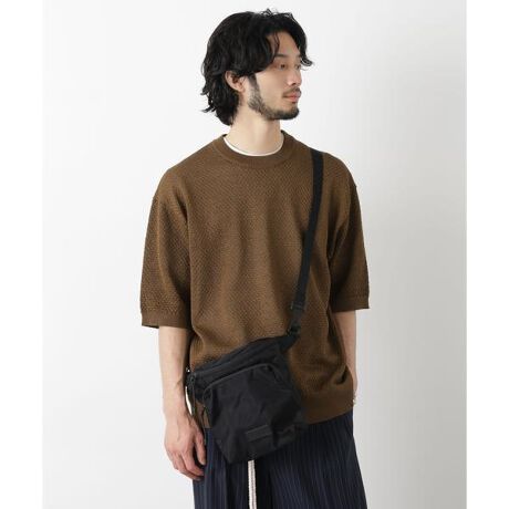 ざっくりとした透かし模様が特徴のクロシェニットTシャツ。ポリエステルの素材にギマ加工を施し、麻の様なシャリ感と光沢感を可能に。涼し気な見た目で、春夏のコーディネートにぴったりのアイテムです。