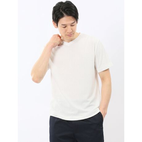 シンプル過ぎない存在感のあるVネックの半袖Tシャツです。無地とは一線を画する表面感のあるジャガード柄で、着映えするルックスに仕上げています。一枚で着るのはもちろん、ジャケットやシャツ、ジレベストのインナーとしても便利なアイテムです。