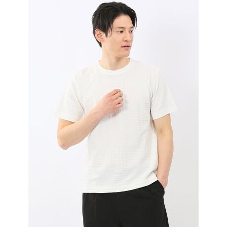 シンプル過ぎない存在感のあるクルーネックの半袖Tシャツです。無地とは一線を画する表面感のあるジャガード柄で、着映えするルックスに仕上げています。一枚で着るのはもちろん、ジャケットやシャツ、ジレベストのインナーとしても便利なアイテムです。
