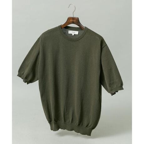 強撚糸を用いたドライなタッチ感、上品さと清涼感のある印象で、一枚でもジャケットなどインナーとしてのアクセントにも◎
