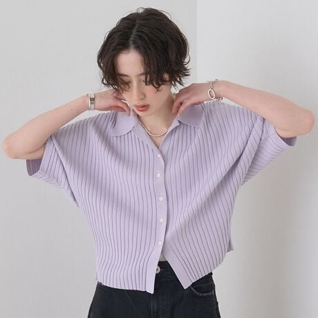 リブ/ドルマン/ポロ/カーディガン/プルオーバー風/ストレッチ/ビスコースレーヨン素材/夏トップス/ラベンダー/セージグリーン