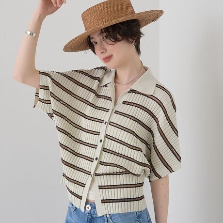 ポロシャツ風の着こなしがおすすめ。デニムやワイドパンツでラフにまとめるほか、スカートと合わせてフェミニンに仕上げても◎。カーディガン感覚で織ればレイヤードにも活躍します。