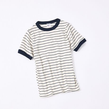 カジュアルなベースにパネル状のリブ編みをアクセントで施した、ディテールにこだわりを感じる一枚。ブラック×ホワイト、ホワイト×ネイビー×グレーのボーダー、チャコールグレーの無地と、それぞれ個性の異なる配色展開が魅力。やわらかな綿100素材とフリーサイズのゆとりで、デイリーに気軽に着回せるベーシック×トレンドなTシャツです。