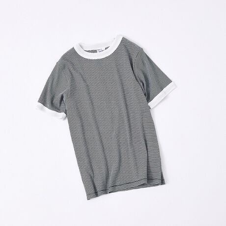 カジュアルなベースにパネル状のリブ編みをアクセントで施した、ディテールにこだわりを感じる一枚。ブラック×ホワイト、ホワイト×ネイビー×グレーのボーダー、チャコールグレーの無地と、それぞれ個性の異なる配色展開が魅力。やわらかな綿100素材とフリーサイズのゆとりで、デイリーに気軽に着回せるベーシック×トレンドなTシャツです。