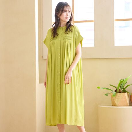 シャリ感があり、表面の細かな凹凸で肌離れが良く、涼し気な楊柳素材で作ったワンピース。