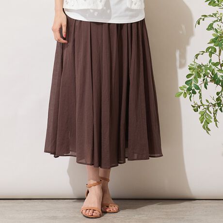 バイオ洗い加工を施した、綿100%シフォン素材で夏に快適な穿き心地のスカート。