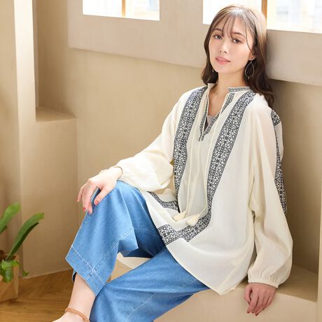 ■クロスステッチが高見えする、エスニックテイストなブラウス■