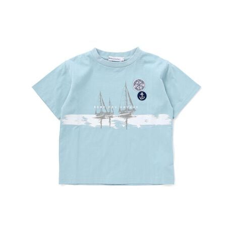 涼し気なヨットプリントが上品な半袖Tシャツ。