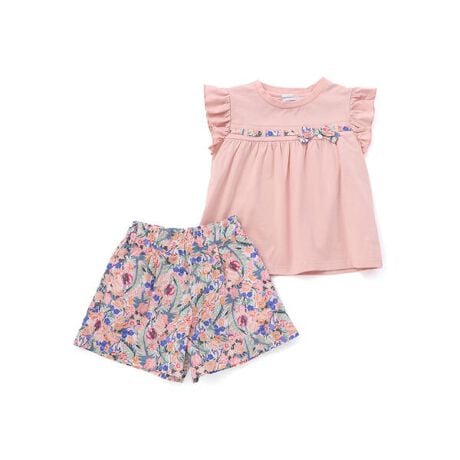 フリル袖デザインのトップスとショートパンツの2点セット。