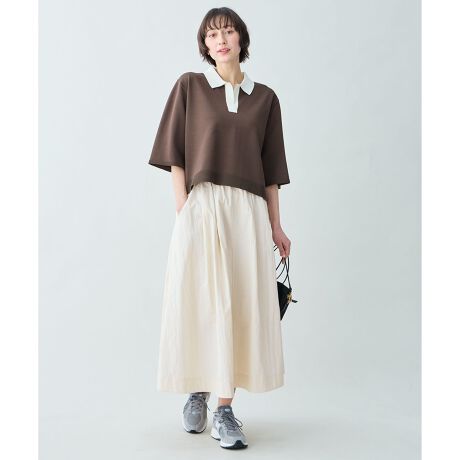 any FAM/anyFAM/any fam/エニファム/エニィファム/ニット/スカート/セットアップ/スキッパー/ポロ/バイカラー/フレアスカート/Aライン/ウエストゴム/異素材