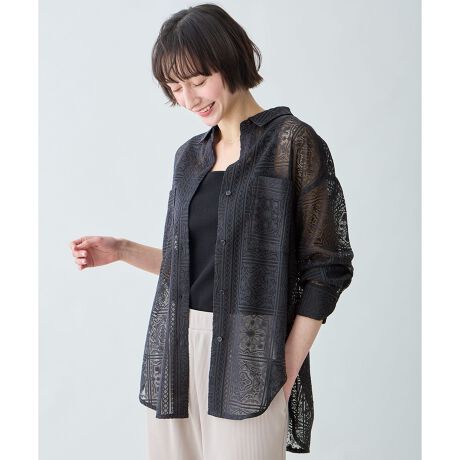 any FAM/anyFAM/any fam/エニファム/エニィファム/レースシャツ/パネル柄/オーバーサイズ/マシンウォッシャブル/洗える/レイヤード/カジュアル/羽織り/トレンド/こなれ感