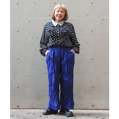 ゆったりとしたシルエットながら、クリンクル加工のおかげでボリュームが出すぎず、すっきり見えを叶えてくれます。