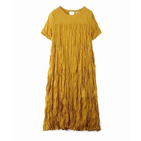 クリンクル加工を施したダンドールワンピースは、生地に自然な凹凸を生み出し、くしゅっとした立体感のある表情に。