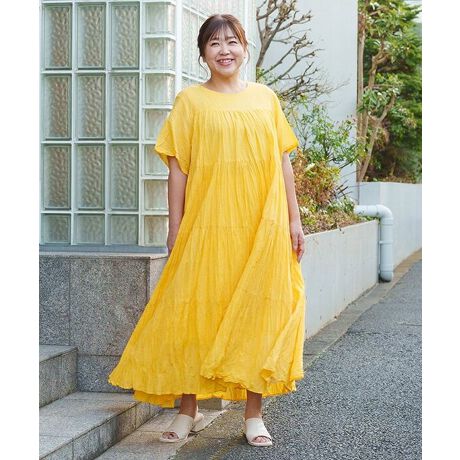 クリンクル加工を施したダンドールワンピースは、くしゅっとした立体感が生まれ、動くたびにやわらかな表情を演出。