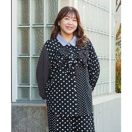◆ドットとチェックで遊ぶゆったりデザインブラウス(大きいサイズ)◆