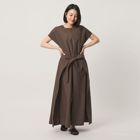 Aラインシルエットで体のラインを拾いにくく、ウエストマークがすっきりとバランス良く見せてくれます。