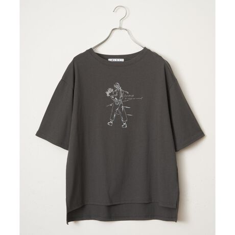 線画タッチで描かれた女の子プリントが雰囲気のあるTシャツ。