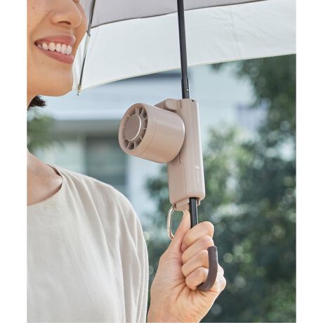 グリップ部の開閉ボタンを押すと本体側面が開き、傘への取り付けが可能。日傘とハンディファンでの両手が塞がるストレスを解消します。装着できる傘の中棒は6mm〜11mmまで対応可能です。