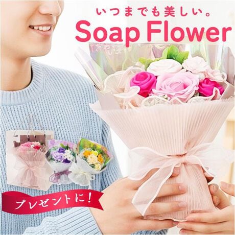 【長く飾れるお花】水やり不要でいつまでも美しさをキープする、本物そっくりの繊細なソープフラワー◎【小さくても存在感大】コンパクトながらバラをたっぷり使ったボリューミーなアレンジが部屋に映えるアイテム!【届いてすぐ飾れる】クリア窓付きの紙袋パッケージで自立するため、開封してそのまま飾れるうれしい仕様。【お世話いらずで手軽】水やりや管理が一切不要で、忙しい毎日でもお花のある暮らしを気軽に楽しめる〇【贈り物にも大活躍】進学・卒業・誕生日など大切な記念日や、大切な人へのお返しにもぴったりな一品♪