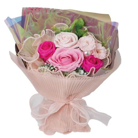 【長く飾れるお花】水やり不要でいつまでも美しさをキープする、本物そっくりの繊細なソープフラワー◎【小さくても存在感大】コンパクトながらバラをたっぷり使ったボリューミーなアレンジが部屋に映えるアイテム!【届いてすぐ飾れる】クリア窓付きの紙袋パッケージで自立するため、開封してそのまま飾れるうれしい仕様。【お世話いらずで手軽】水やりや管理が一切不要で、忙しい毎日でもお花のある暮らしを気軽に楽しめる〇【贈り物にも大活躍】進学・卒業・誕生日など大切な記念日や、大切な人へのお返しにもぴったりな一品♪