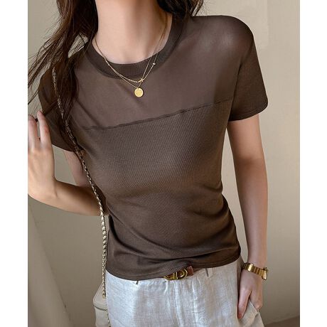 リブとチュール素材がドッキングされた一枚でサマ見えするカットソー。