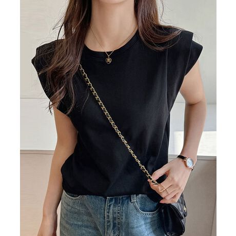 袖口が二枚重ねになったダブルショルダーデザイン。シンプルなTシャツの高見えポイントになります。二の腕カバーと細見えも叶えます。