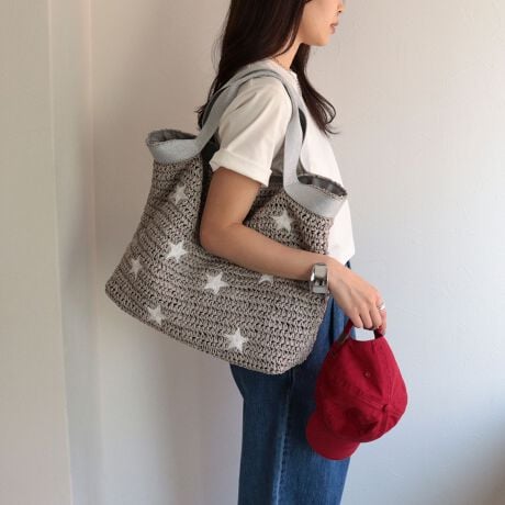 ・涼しげなペーパー素材にキャッチーな星柄をあしらったトートバッグ
