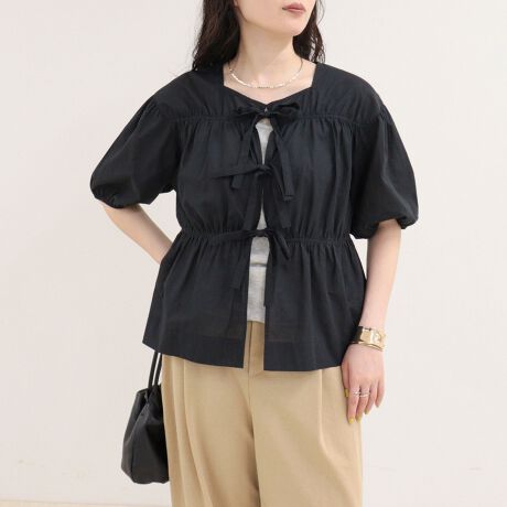 大人可愛いフロントリボンブラウス