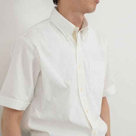 清潔感あるBD仕様と快適素材の万能シャツ