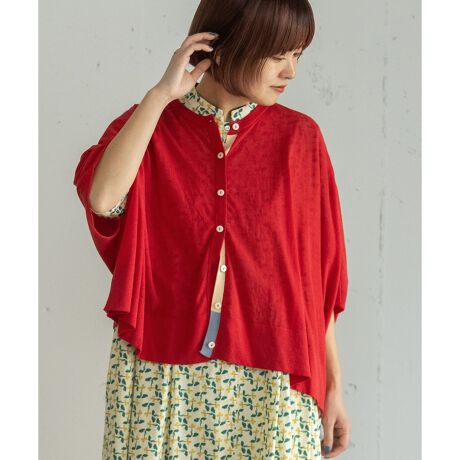 ケープのようなデザインカーディガン。抜け感のある短めの着丈に、たっぷりとしたリラックス感のあるシルエット。サイドの開きが気にならないよう袖下は綴じた仕様にしています。下前立てを配色にして、羽織った時のアクセントになるようにしています。ボタンを留めてプルオーバーとしての着用もおすすめ。清涼感のある、軽くさらっとしたタッチのコットンで、シーズンの変わり目や冷房対策にもご活用いただけるアイテムです。