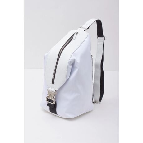 ナイロンツイルとシュリンクレザーをコンビ使いしたデザインワンショルダーバッグ。