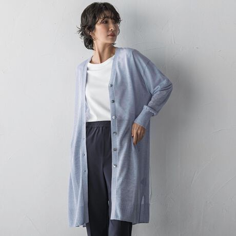 シアーシャイニーニットロングカーデ。