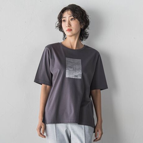 パリの街並みを表現したキャッチーな風景の刺繍がポイントのTシャツ。