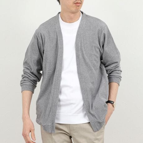 ・ボタンを省いたミニマルなボタンレスカーディガン