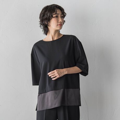 裾にサテン素材を切り替えることで、さりげない艶をプラス。